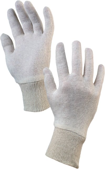 Ochranné pracovní rukavice kategorie CE 1 z režného bavlněného úpletu, pružná manžeta.