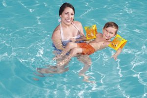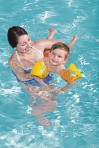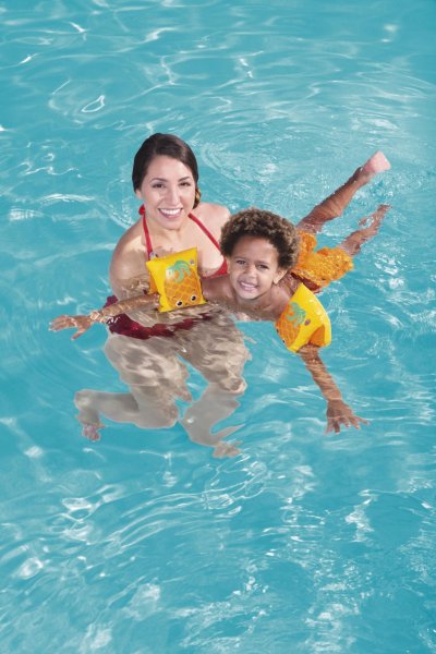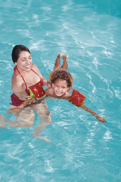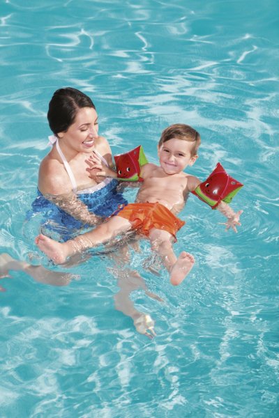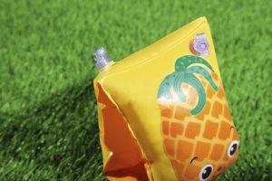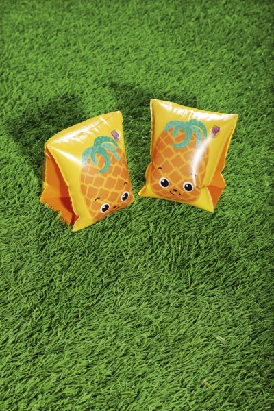Nafukovací rukávky s obrázkem ovoce pro děti od 3 do 6 let o velikosti 23×15 cm.