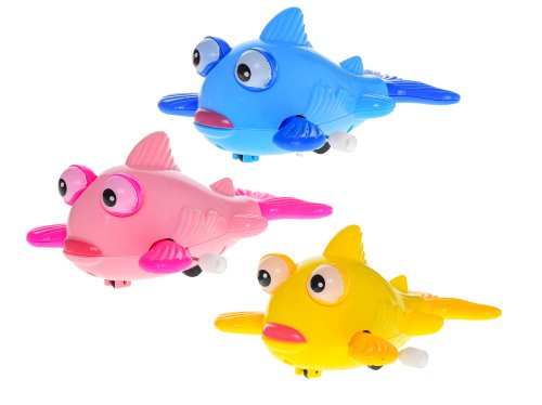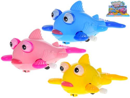 Ryba 11 cm na klíček po natažení jezdící - mix barev (žlutá, růžová, modrá)