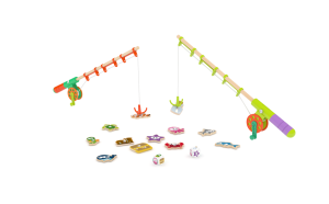 Barevné rybičky jsou vyrobeny z kvalitního dřeva, bezpečně zaoblené a natřené nezávadnými barvami. Hračka je ideální pro hru doma, ve školce i na cestách.