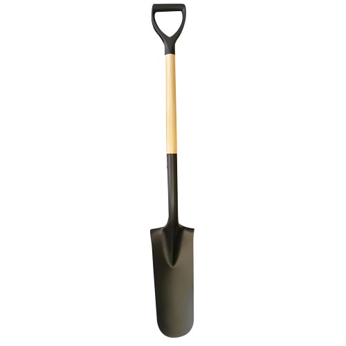 Černý rýč vhodný na hloubení úzkých výkopů s dřevěnou násadou s PH-Y ručkou.