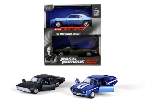 Kovové modely aut z filmu Rychle a zběsile ve dvojbalení - Chevrolet Camaro 1969 a Dodge Charger Wide Body 1968, volnoběh, otevírací dveře, měřítko 1:32, velikost 13 cm. Wave 2/1.