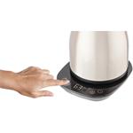 Požadovanou teplotu vody navolíte na přehledném dotykovém panelu od 40 do 100 °C pro správnou přípravu různých druhů horkých nápojů. Konvice pracuje tiše a maximálně bezpečně – stěny jsou chladné i při varu a díky zámku víka nevyteče při převrhnutí ani kapka.