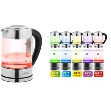 Rychlovarná konvice ve skleněném provedení Funkce dechlorace pro převaření vody Objem 1,7 l Skleněné provedení Ohřev teploty vody od 60 do 100 °C 5 různých druhů podsvícení v závislosti na teplotě, 180vteřin …
