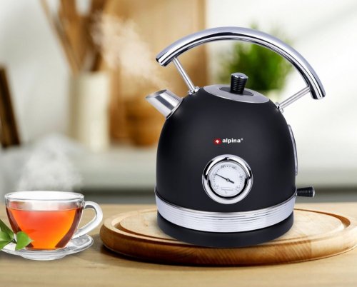 Hledáte retro rychlovarnou konvici, která během chvilky dostane vodu na perfektní teplotu? Pak je tato konvice alpina retro černá to pravé pro vás. Tento dávkovač horké vody má kapacitu 1,8 litru, je vybaven vestavěným termostatem, průhledným ukazatelem hladiny vody, ochranou proti vyvaření a ocelovou rukojetí, díky které je nalévání vody snadné a bezpečné.
