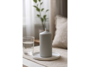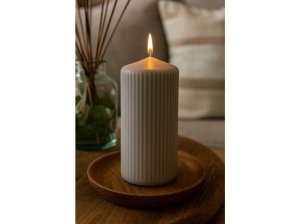 Rýhovaná Válec 65x140mm Metal mat sv. zelená svíčka