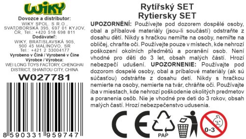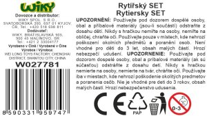Rytířský set. Součástí meč, štít, helma. Délka meče 49 cm.