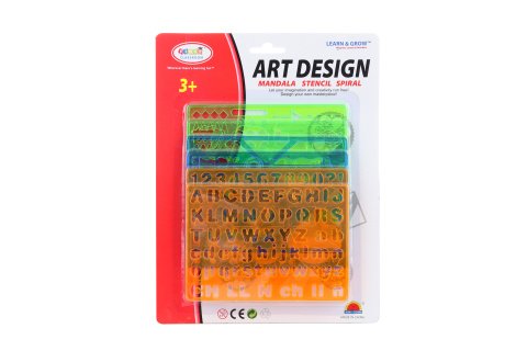 Sada obsahuje 6 plastových šablon s písmenky, číslicemi, tvary, znaky a obrázky. Baleno na kartě. Rozměry balení cca 22,5x29x2,5 cm. Rozměry jedné šablony 16x11,5. Věk 3+