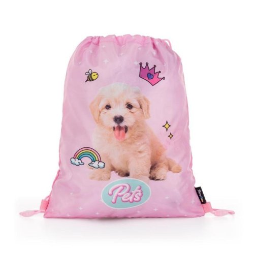 Sáček na přezůvky. Uzavírání stažením šňůrek, možnost nosit i na zádech nebo připevnit ke školnímu batohu. Materiál 100% polyester.