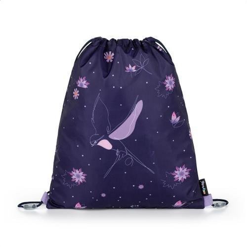 Sáček na přezůvky. Uzavírání stažením šňůrek, možnost nosit i na zádech nebo připevnit ke školnímu batohu. Materiál 100% polyester.