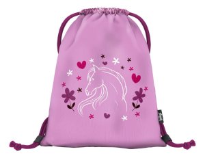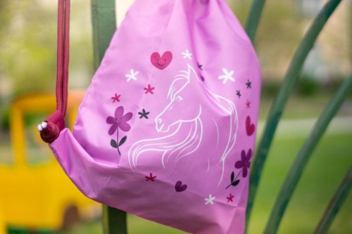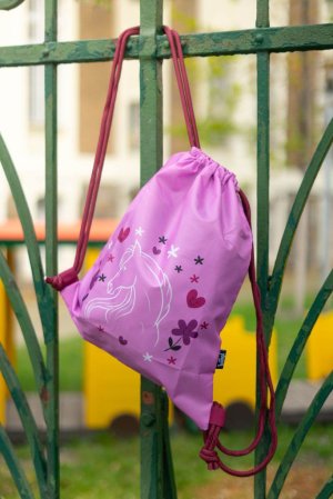 • Sáček na cvičky nebo přezůvky s motivem koně z pevného omyvatelného materiálu.