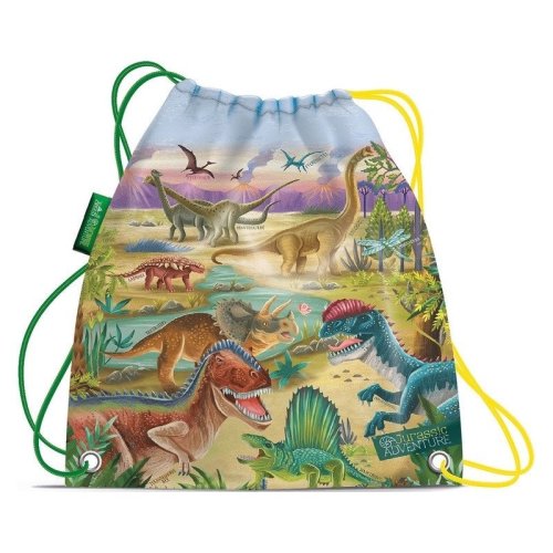 Školní sáček Jurassic adventure na přezůvky a sportovní potřeby s vnitřní kapsou na zip. Kapsa, neboli sáček je skvělý na školní úbor, výtvarnou výchovu, ale i jako menší taštička.