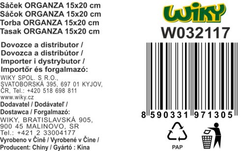Sáček ORGANZA o velikosti 15x20 cm Vánoce 2 barevné provedení: zlatý, stříbrný