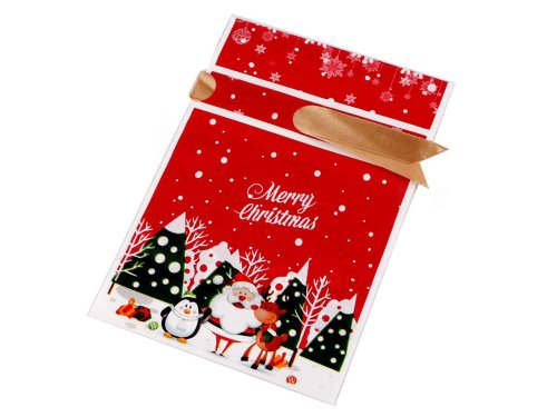 Sáček s atlasovou stuhou vánoční 15x23 cm - červená (50 ks)