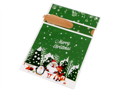 Stahovací sáčky s vánočními motivy se skvěle hodí [na dárkové balení různých balených pochutin, ale také třeba kosmetiky, svíček a jiných maličkostí]. Stahují se pomocí saténové stuhy. Sáčky jsou matné, zdobené potiskem z obou stran. Mají rozšířené dno. Výška sáčku po stuhu je 16 cm.
