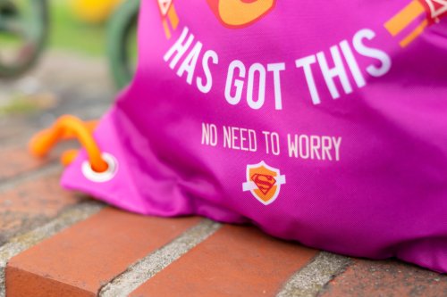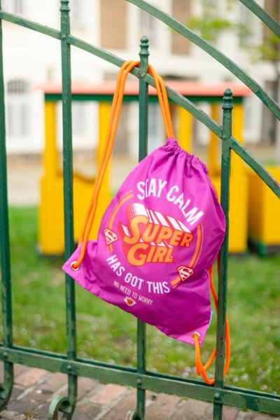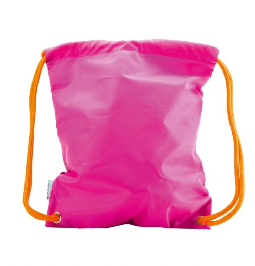 Sáček na obuv z pevného, omyvatelného materiálu. Zdrhování pomocí pevných tkanic, které zároveň umožňují nošení na zádech.