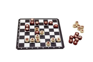 Šachy jsou určeny pro dva hráče. Snažíte se logickým umem a strategií přehrát soupeře. Bojují proti sobě figurky dvou barev, které mají různá pravidla použití. Zvítězí ten, který dá králi soupeře MAT. Rozměr krabice: 20 x 20 x 4 cm Vhodné od 5 let