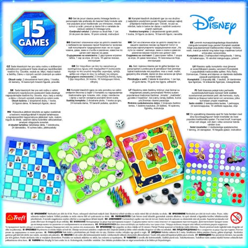 Sada klasických her pro celou rodinu s vašimi oblíbenými pohádkovými postavami Disney. Sada obsahuje nejpopulárnější tradiční hry: člověče, mlýn, hadi a žebříky a dámu v různých verzích známých po celém světě.