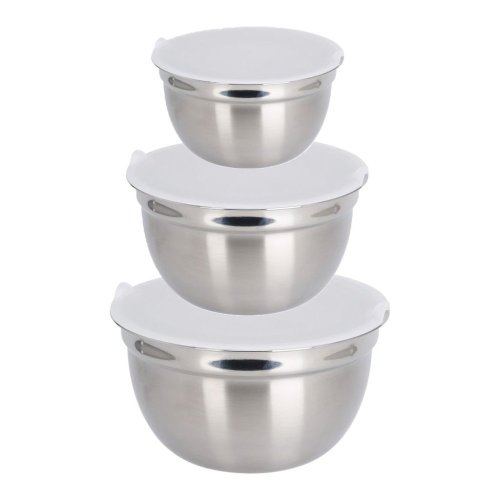 Praktická sada misek z odolné nerezové oceli 14/1, ideální pro skladování potravin, přípravu jídel nebo servírování. Každá miska je vybavena víčkem z LDPE, které zajišťuje bezpečné uzavření a uchování čerstvosti obsahu.