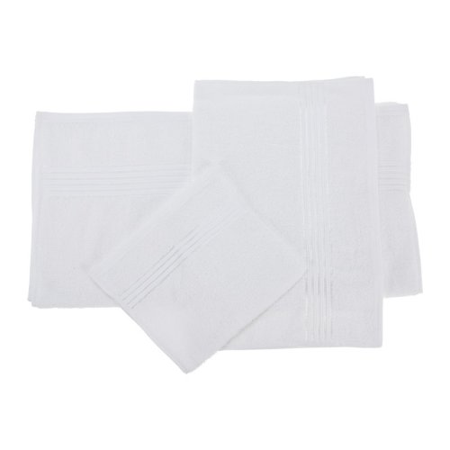 sada ručníků 3ks,<BR> 80% bavlna,<BR> 20% viskóza/chenile/polyester.<BR> 3 velikosti: malá: 30x50cm,<BR> střední: 50x100cm,<BR> velká: 70x140cm,<BR> barva: bílá