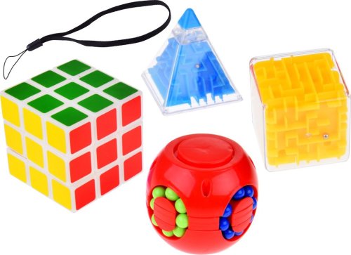 Obsah balení: Rubikova kostka, rotující hlavolam, labyrint kostka, labyrint jehlan. Upozornění : Fotografie jsou pouze ilustrativní. Barevné provedení dodáváme dle skladových zásob.