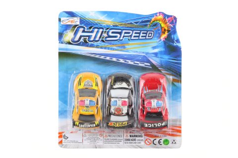 Balení 3 policejních autíček. Materiál plast. Baleno na kartě. Rozměry balení cca 21x19x3 cm. Velikost autíčka cca 9 cm. Věk 3+