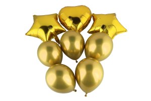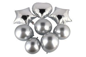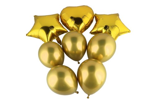 Sada nafukovacích balónků s elegantním designem pro narozeninové oslavy, focení nebo výzdobu pokojíčku. Obsahuje celkem 8 kusů – 1x fóliový balonek ve tvaru srdce, 2x fóliový hvězdicový balonek a 5x kulatých latexových balónků v ladících pastelových barvách. Balónky je možné plnit vzduchem i heliem.