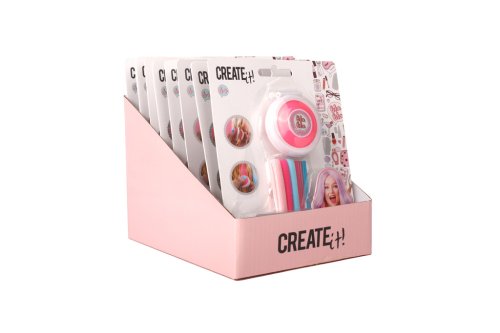 Sada dvou barevných kříd a gumiček do vlasů – sada obsahuje modrou nebo růžovou křídu na vlasy 6 slabých a 3 silné gumičky.