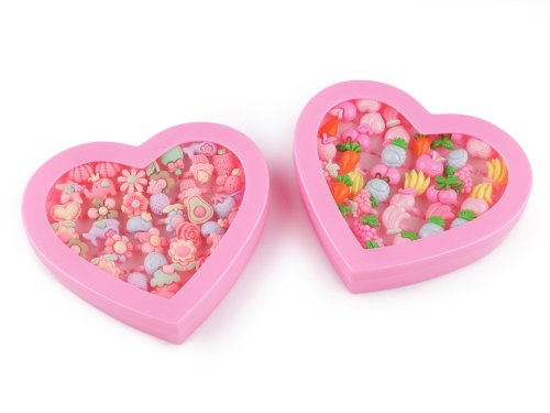Mix dětských prstýnků je zabalený v plastové srdcové kazetě, která má průhledné plastové víko. Je ideální na prodejní prezentaci. Prsteny jsou ozdobené barevnými 3D ozdobami s různými motivy, u dětí jsou velice oblíbené. Zadní strana prstýnku je otevřená, mají univerzální velikost určenou pro drobné dětské prsty. Vnitřní průměr 13,7 mm odpovídá standardní velikosti 43. Velikosti prstenů naleznete v naší tabulce.