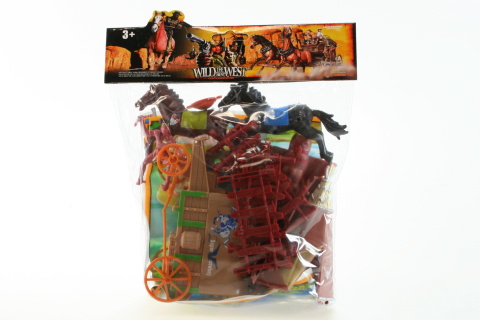 Plastoví indiání v sáčku (indián, dostavník, koně, týpí, plánek). Rozměr balení cca 20 x 22 cm. Materiál plast. Věk 3+