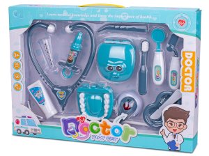 Sada doktor na baterie se světlem a zvukem - mix barev (bílý stetoskop, zelený stetoskop)
