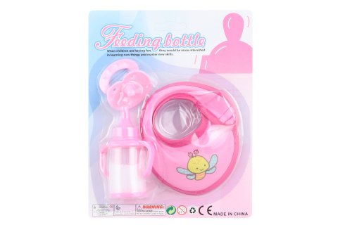Sada doplňků pro panenku obsahuje lahvičku, dudlík a bryndáček. Rozměr balení cca 21 x 16,5 x 5 cm. Věk 3+