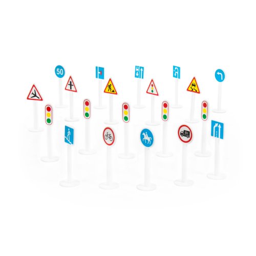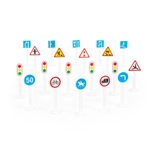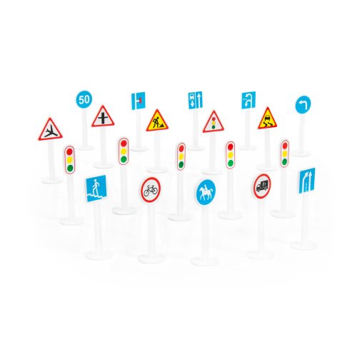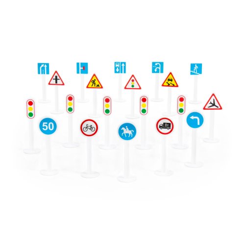 Připrav značky, nastartuj auto a vydej se na cesty! Nauč se zábavnou formou hry poznávat dopravní značky! S touto plastovou sadou to půjde raz dva!
