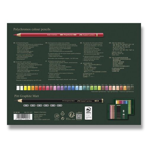 Pastelky:, * vysoký obsah velmi kvalitních pigmentů zaručuje odolnost proti světlu a intenzitu barev, * tloušťka tuhy 3,8 mm, * silná hladká tuha na olejové bázi, * voděodolná, * nerozmazává se, Grafitové tužky:, * vysoká kvalita měkkého dřeva zajišťuje snadné ořezávání, * speciální SV technologie vkližování zamezuje lámání tuhy při pádu tužky na zem, * povrchové laky na vodní bázi v zájmu ochrany životního prostředí, * obsahuje grafitové tužky trvdosti HB, 2B, 4B, 6B, 10B, 14B, Tip: Ke kreslení můžete potřebovat i umělecké papíry.