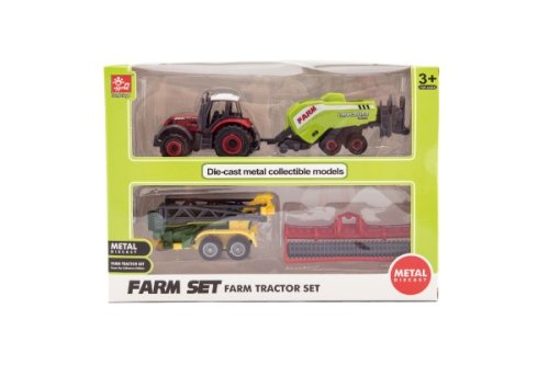 Sada nejen pro malé farmáře je skvělý doplněk do každého pokojíku. Sada obsahuje traktor a 3 vyměnitelné vleky a přívěsy potřebné v zemědělské výrobě. Traktor jezdní na volný chod. Rozměry balení 21 x 15 x 6 cm. Vhodné pro děti od 3 let.