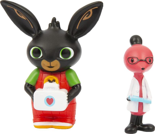 Sada plastových figurek inspirovaných animovaným dětským seriálem o králíčkovi Bingovi a jeho veselých kamarádech. Balení obsahuje dvě figurky o velikosti cca 7 cm. V balení děti najdou králíčka Binga a doktorku Molly. Vhodné pro děti od 18 měsíců.