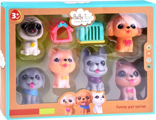 Rozkošné figurky pejsků jsou ideální pro dětské ručičky a lze je snadno uchopit. Jejich milé tváře a velké oči vás přesvědčí na první pohled. Po stisknutí vydávají legrační zvuk , stejně jako opravdová štěňátka. Vyrobeno z měkké gumy. Obsah balení : 4 figurky pejsků, boudička, přepravka. Rozměry figurek (rozměry se mohou mírně lišit v závislosti na typu figurky): cca. 8 x 4 x 6 cm Poznámka: Fotografie jsou pouze ilustrativní. Barevné provedení se může mírně lišit od vyobrazených fotografií.