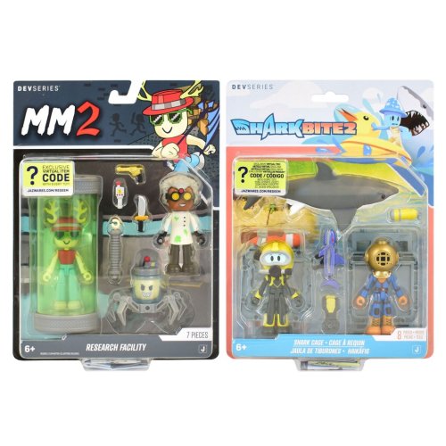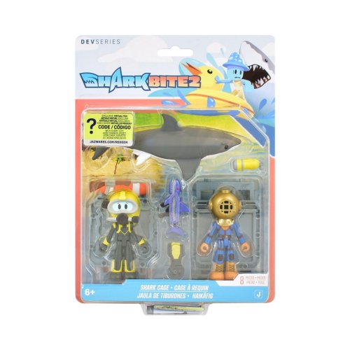 Tato herní sada DEVSeries přináší napínavou scénu z edice Shark Bite2. Součástí jsou dvě figurky ve velikosti cca7cm), které reprezentují potápěče (Diver a DeepSeaDiver), dále stavební doplňky – klec pro žraloka a žraloka Velké bílé(“GreatWhiteShark”) – a navíc exkluzivní kód pro odemknutí virtuálního předmětu v online prostředí. Obsah balení: 2 akční figurky (Diver, DeepSea Diver), 1 doplněk „žraločí klec“ (ready‑to‑build), 1 figurka žraloka Velké bílé, Exkluzivní herní kód pro virtuální obsah.