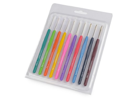 Sada obsahuje 10 háčků následujících velikostí: [0,6; 0,8; 1; 1,2; 1,4; 1,6; 1,8; 2; 2,2; 2,5.]