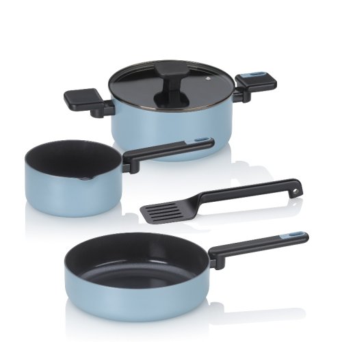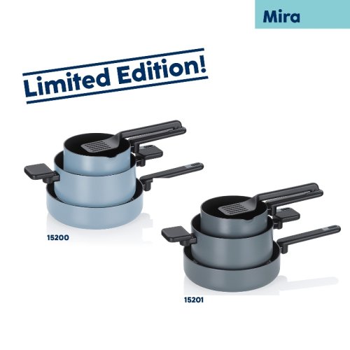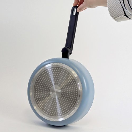 Moderní hliníková sada nádobí v kouřově modr barvě přináší do vaší kuchyně harmonii stylu, funkčnosti a pohodlí. Spojuje elegantní design s praktickými detaily, které ocení každý, kdo rád vaří a zároveň si potrpí na estetiku.
