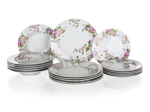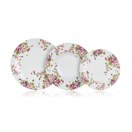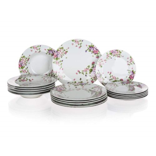 sada obsahuje: 6 x dezertní talíř, pr. 19 cm 6 x hluboký talíř, pr. 21,5 cm 6 x mělký talíř, pr. 24 cm