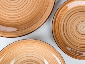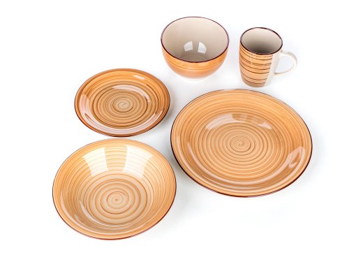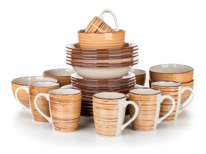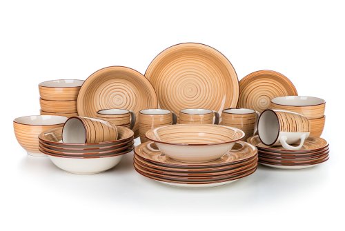 30dílná jídelní sada SPIRAL BROWN se hodí pro každé stolování. Nádobí lze používat do mikrovlnné trouby a mýt v myčce na nádobí.