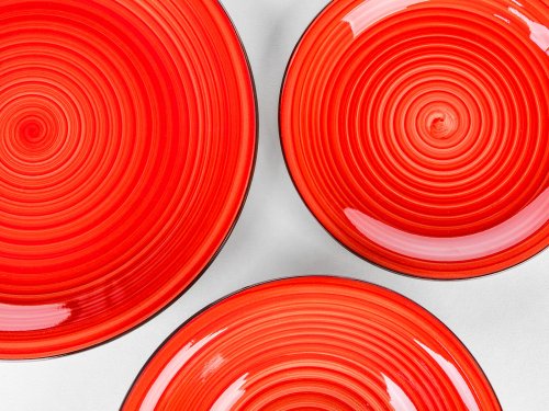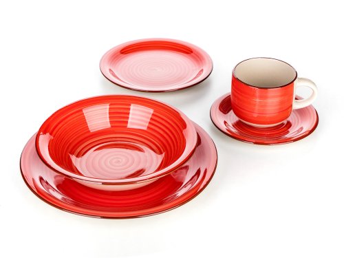 30dílná jídelní sada SPIRAL RED se hodí pro každé stolování. Nádobí lze používat do mikrovlnné trouby a mýt v myčce na nádobí.