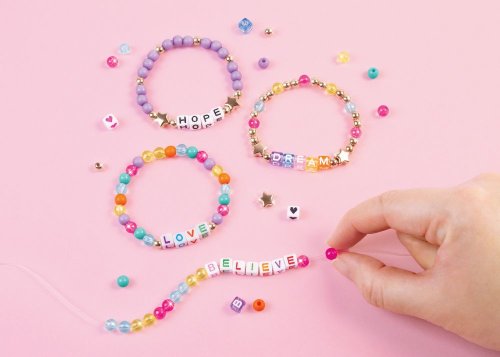 Nejlepší sada náramků přátelství! Použijte více než 1000 různých korálků k vytvoření náramků se zábavnými a inspirativními zprávami. Náramky přátelství jsou velmi trendy a vždy stylové a jsou perfektní kutilskou činností pro mladé kreativce. Obchodujte s přáteli, sdílejte zábavu a šiřte pozitivní zprávy! Tato sada náramků je skvělým nápadem na dárek pro začínající kreativce, ať už k narozeninám, svátku nebo jen tak. Sestavování náramků přátelství rozvíjí jemné motorické dovednosti doplnění a umožňuje jim kreativně se vyjádřit. Tato aktivita je ideální pro děti ve věku 8+ a umožňuje jim být kreativní a prozkoumat svůj jedinečný styl.