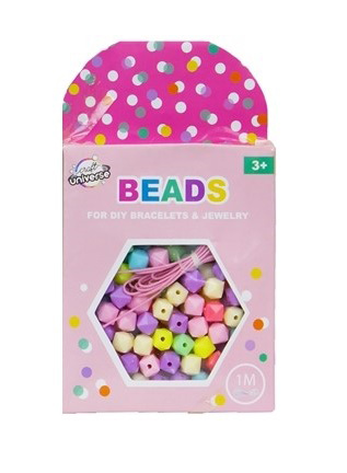 Sada barevných korálků v krásné papírové krabičce, součástí balení také provázek pro navlékání korálků o délce 1 metr, korálky lze snadno navléct a vytvořit si náramky a náhrdelníky - pro sebe nebo pro kamarádky či kamarády, lze kombinovat s ostatními druhy korálků z kolekce (12 druhů)