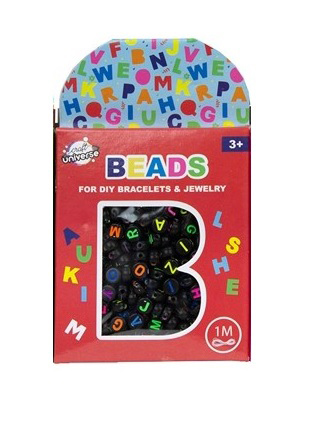 Sada korálků - písmenka černé + 1 metr provázek