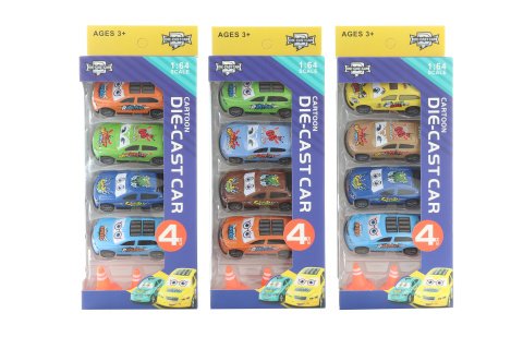 Balení obsahuje 4 kovová auta o velikosti cca 8 cm a 3 kužely na objíždění..Rozměr balení cca 11 x 27 x 4,5 cm.Věk 3+