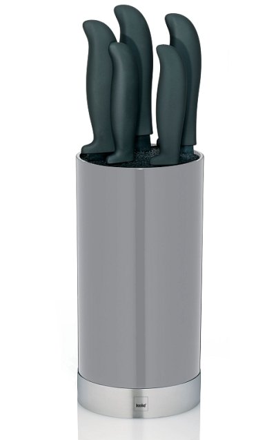 Stojan ze šedého PP plastu je vybaven tenkými plastovými tyčemi, které umožňují libovolné umístění nožů. Díky tomu si můžete nože uložit přesně podle potřeby, a zároveň je jejich ostří chráněno před poškrábáním a otupením.