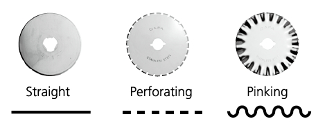 Součástí balení: řezací kolečko, náhradní břity (rovný, perforace, vlnka)