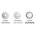 Součástí balení: řezací kolečko, náhradní břity (rovný, perforace, vlnka)